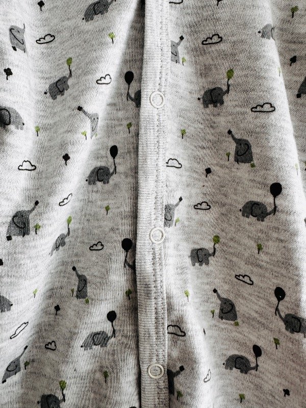 Confeccionado 100% algodón, suave y cómodo. Ideal para un buen descanso. Cuenta con botones a presión que facilitan el cambio de pañal y brindan practicidad.